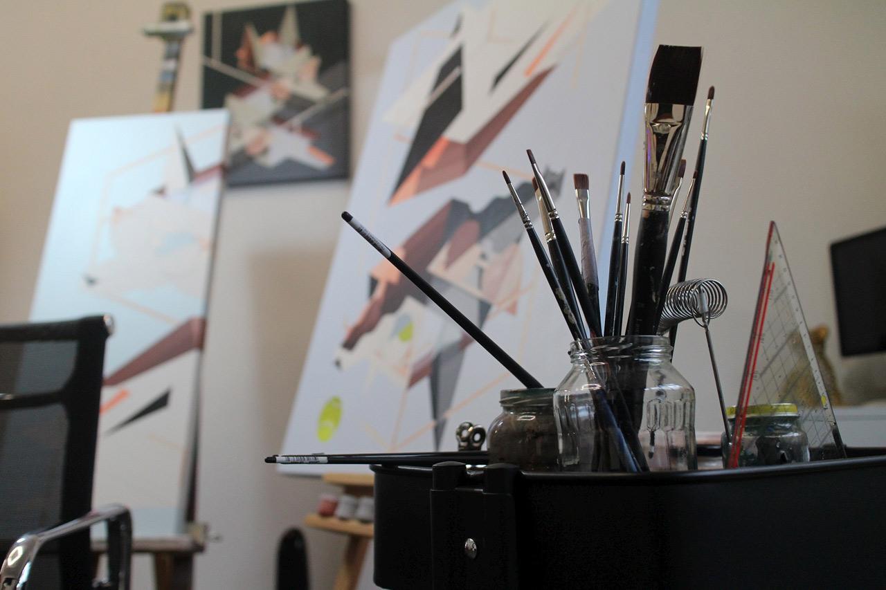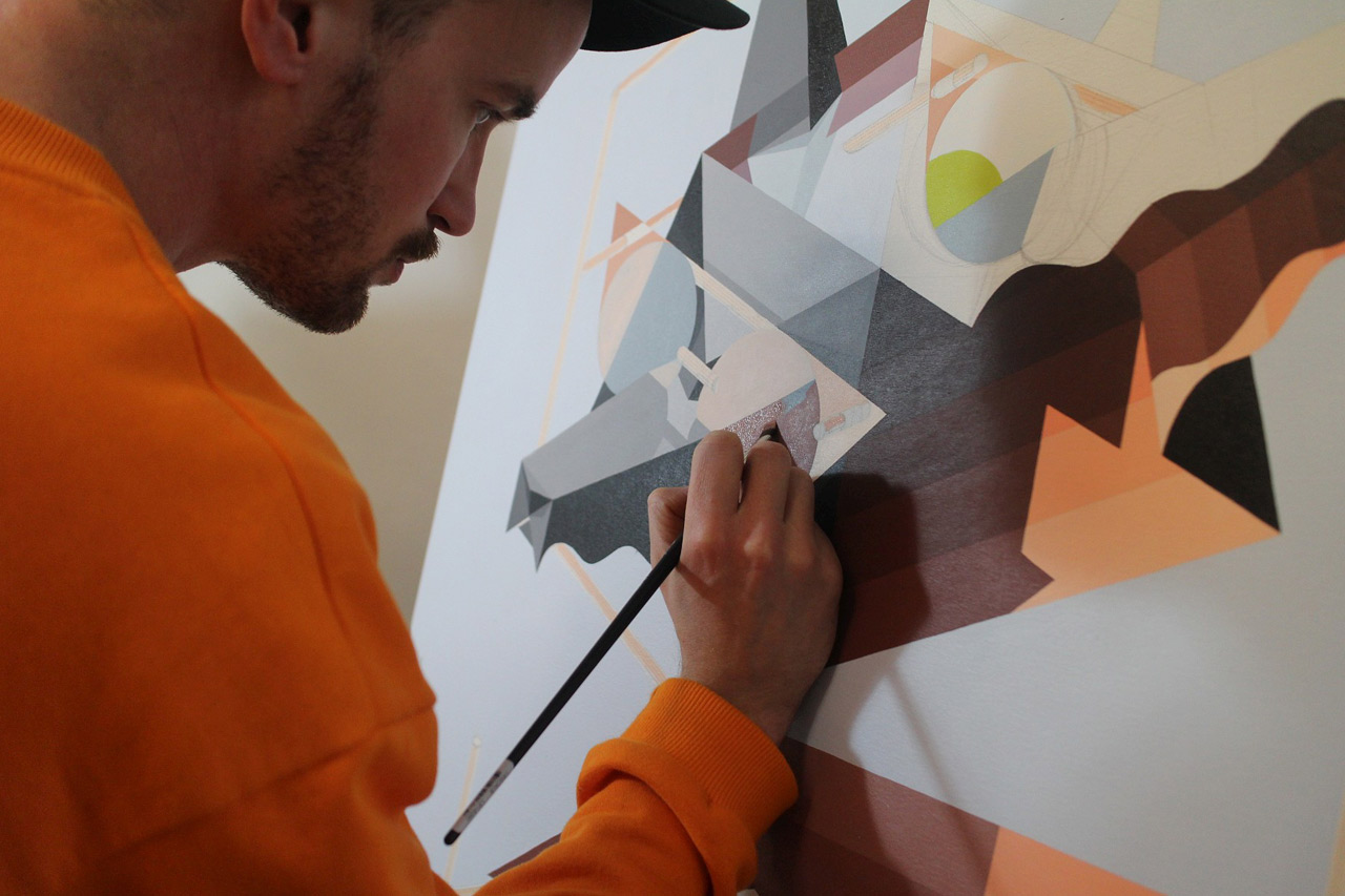 Their work comprises several reoccurring characters all constructed from bold geometric shapes and vivid patterns. As the viewer begins to deconstruct these forms, the complexity of their aesthetic is revealed with each symbol introducing another layer to explore. The contrast in the forms is as evident as the conflict with our human sensibilities…hardwired to progress but an innate urge to return to the past.