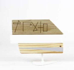 A series of small lost object sculptures, forming an ongoing exploration of these small style free standing pieces. Each one is a quick single idea about shape and form, reminiscent of sails, boats, fins, waves or flags. All the sculptures have been laser etched with little shapes and symbols, and the wood was collected in Portugal, Spain and off the street heaps in Amsterdam.